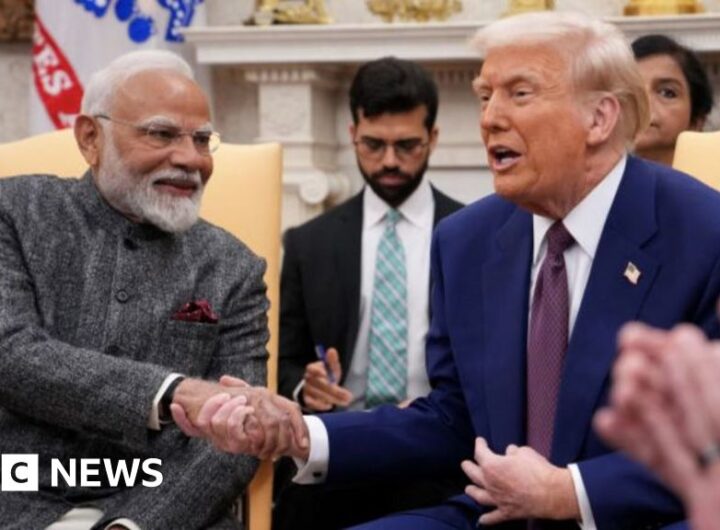 Jude Sheerin BBC naujienos Ataskaitų teikimas išVašingtonas Žiūrėti: Trumpas ir Modi sako, kad susitikimas sukasi apie prekybą...