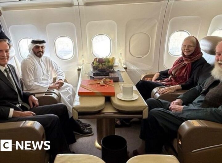 Caroline Hawleydiplomatinis korespondentas ir Aleksas Phillipsas Kataro vyriausybė Barbė ir Peteris Reynoldsas (dešinėje) pirmiausia skris į Katarą...